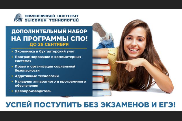 Воронежский институт высоких технологий объявляет ДОПОЛНИТЕЛЬНЫЙ НАБОР на программы среднего профессионального образования!