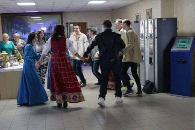 10 марта студенты и преподаватели с весельем и забавами праздновали масленицу. Традицией стало угощение блинами с медом, вареньем, сгущенкой. Задорные игры в «Ручеек», хороводы, песни, пляски никого не оставили равнодушными.